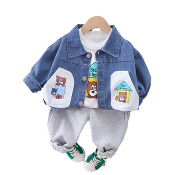2024 Light Autumn Boys Clothing Sets Cotton Denim Jacket with Bear Patch Printed Design